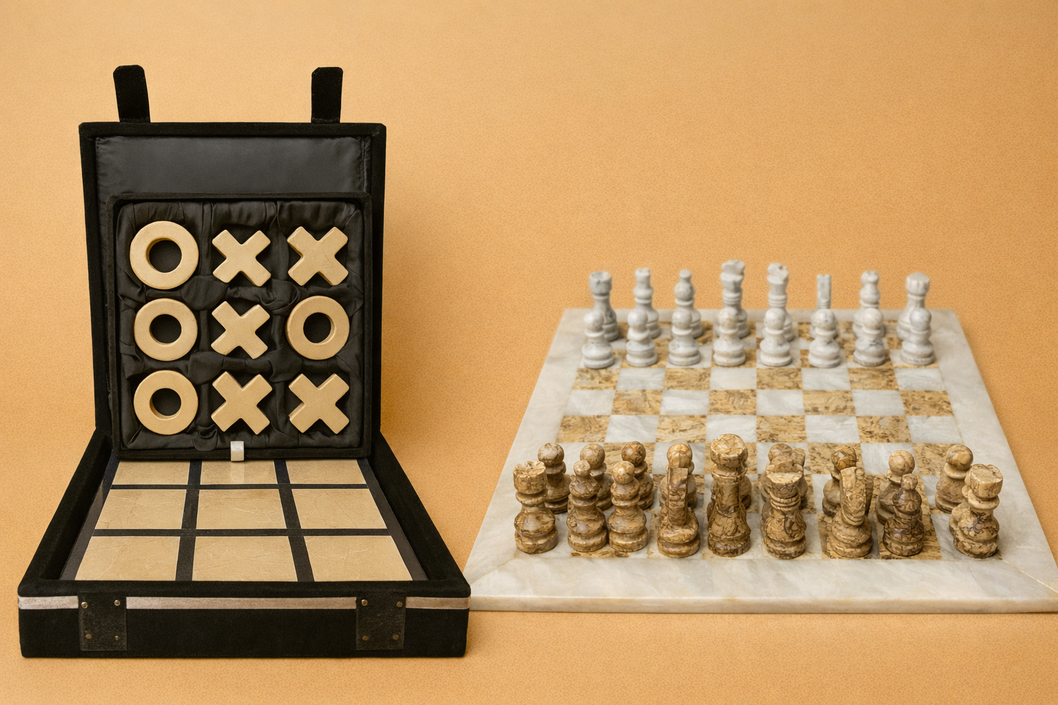 Marble Tic-Tac-Toe Game Set – Black & Beige