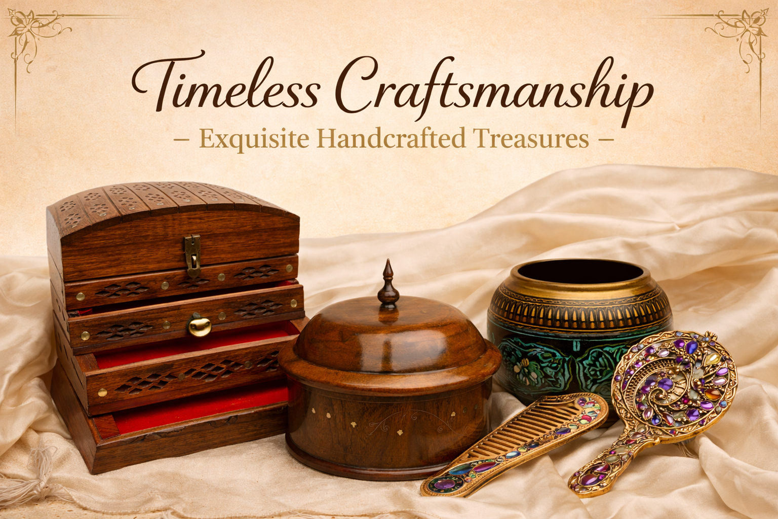 Handcrafted Sheesham Wood Ashtray with Brass Inlay